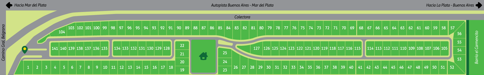 - Todos los servicios subterráneos: Luz eléctrica, gas natural, agua corriente, cloacas y teléfono.